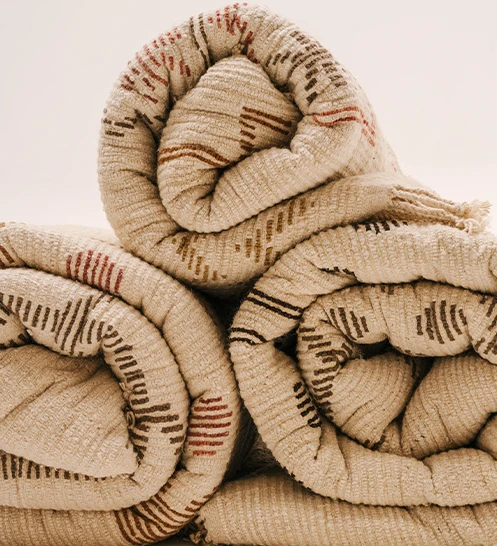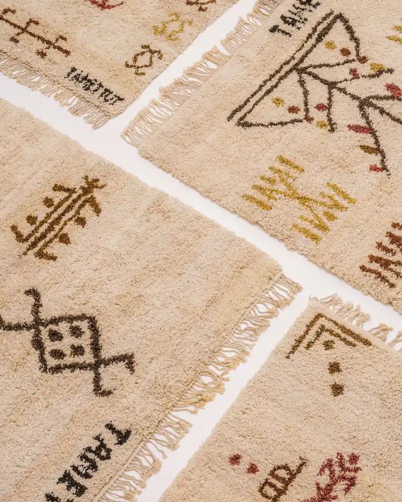 Une fois le design validé, le tapis est tissé à la main par les femmes tisseuses du Moyen Atlas et livré accompagné de son histoire écrite.